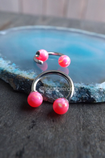Spice up your look with this gorgeous pink opal septum ring. Each ring is created with quality implant grade stainless steel and designed with excellent craftsmanship.